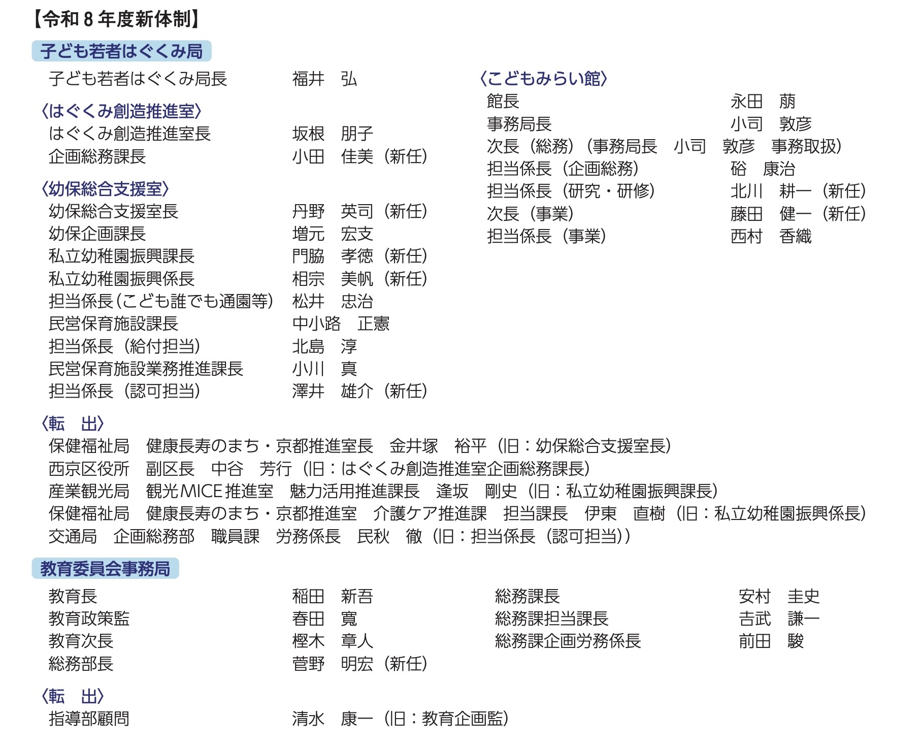 【育みの窓】令和8年度 子ども若者はぐくみ局・教育委員会事務局の新体制について
